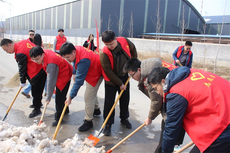 下午,10余名志愿者身著統(tǒng)一服裝,手持鐵鍬、掃帚等工具,對工業(yè)區(qū)園區(qū)內(nèi)的垃圾和積雪進(jìn)行集中清掃,以實際行動保障道路整潔、暢通,為過往司乘人員及周邊群眾安全出行保駕護(hù)航。